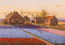 Leo van den Ende (1939), bollenvelden bij boerderij, olieverf op doek, r.o. gesigneerd, 69 × 49 cm
