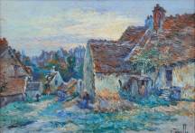 Ernest Marie Pernelle (1861-1950), 'Hameau près Saint Bernard du Sault, Indre', olieverf op paneel, r.o. gesigneerd, verso getiteld, 23 × 33 cm