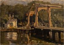 Hendrik Willebrord Jansen (1855-1908), de Lange Vechtbrug te Weesp, olieverf op doek, r.o. gesigneerd -miniem stukje verfverlies bij een van de brugpijlers-, 40 × 55,5 cm