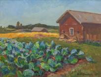 Schilderij: het koolveld, olieverf op doek, r.o. onduidelijk gesigneerd, gedateerd '48, 50 × 65 cm