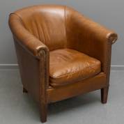 Bruin lederen clubfauteuil -gebruikssporen-, 79 × 81 × 84 cm