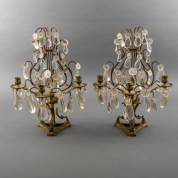 Paar bronzen girandoles met kristallen pegels, Frankrijk, 19e eeuw, 50 × 31 × 23 cm