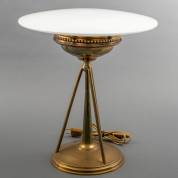 Tafellamp met schotelvormige opaline kap op messing onderstel, Art Deco-stijl, modern, 40 × Ø 36 cm