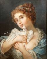 Naar Jean-Baptiste Greuze (1725-1805), meisje met duif, olieverf op doek, 19e eeuw, 52,5 × 40,5 cm