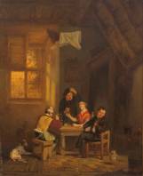 C. Eechaut (19e eeuw), herberginterieur met vrolijke drinkers, olieverf op paneel, r.o. gesigneerd, 54 × 43,5 cm