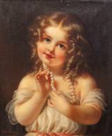Jules Laure (1806-1861), meisje met parelsnoer, olieverf op doek, l.o. gesigneerd -craquelé, paar stukjes verfverlies aan bovenzijde-, 46 × 37,5 cm