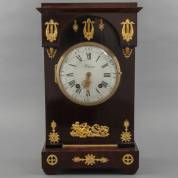 Pendule in mahoniegefineerde kast, met opschrift 'Barbezat à Paris', vroeg 19e-eeuws uurwerk in latere kast -gebruikssporen-, 57 × 33 × 20 cm