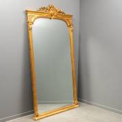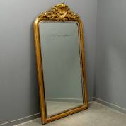 Spiegel in deels vergulde lijst, de kuif met gesneden rocaille en bloemen, 20e eeuw -spiegel verweerd-, 170 × 93 cm