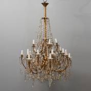 20-lichts messing kroonluchter met kristallen pegelsnoeren -één arm gebroken-, 120 × Ø 85 cm