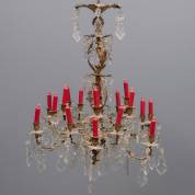 Achttienlichts koperen kaarsenkroon met kristallen pegels, Frankrijk, 19e/20e eeuw, 100 × Ø 80 cm
