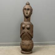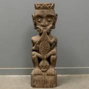 Houten voorouderbeeld: vrouwfiguur, Dayak, Kalimantan, Borneo -enkele krimpscheuren-, 92 × 24 × 20 cm