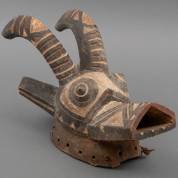 Afrikaans houten Bobo antilope masker, gedecoreerd met witte, rode en zwarte verf, Burkina Faso, tweede helft 20e eeuw, 46,5 × 18 × 25 cm