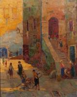 Rudolf Négely (1883-1950), Straat met figuren, olieverf op doek, l.o. gesigneerd en gedateerd 1930, 68 × 54 cm