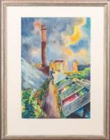 Hollandse School: man bij kassen, gemengde techniek op papier, m.o. gesigneerd A. de Haas, maar niet van de hand van Aad de Haas (1921-1972), 50 × 33,5 cm