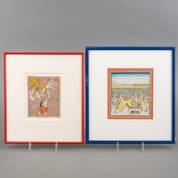 Indiase School, twee gouaches: jachtpartij met Garuda, 15 × 12,5 cm, en een ontvangst met Hanuman, 19 × 17 cm