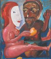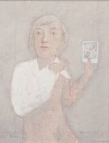 Peter van Poppel (1945-2023), op schoot, gouache op karton, r.o. gedateerd VTR '86, herkomst: Collectie Galerie Jas, Utrecht, 28 × 32 cm