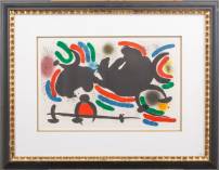 Nadruk naar Joan Miró (1893-1983), abstracte compositie in kleur, litho afkomstig uit boek, niet gesigneerd -centrale vouwlijn- 31,5 × 49,5 cm