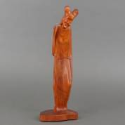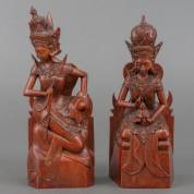 Paar gesneden houten beelden, biddend echtpaar in traditionele kleding, Bali, tweede helft 20e eeuw