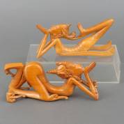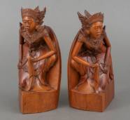 Paar gesneden houten boekensteunen: djanger danseressen, niet gesigneerd, Bali, tweede helft 20e eeuw