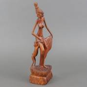 Gesneden houten beeld: Balinese schone met hond, gesigneerd M.D. Rengen, Bali, tweede helft 20e eeuw
