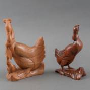 Twee gesneden houten beeldjes: eend, en eend met vis in de bek en kuiken, Indonesië, herkomst: collectie Jan Juffermans, grootste 21 × 14 × 8 cm