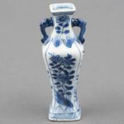 Chinees porseleinen miniatuurvaasje met blauw-wit bloemdecor, 18e eeuw -randschilfers, enkele bakfoutjes-, 10 × 3 × 2,5 cm