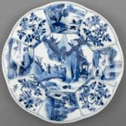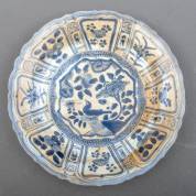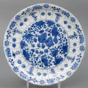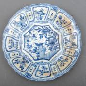 Chinees kraakporseleinen schotel met blauw-wit decor: vogel op rots, Wanli, herkomst: veiling Christie's, 'The Hatcher Collection', Amsterdam, 1984 -aanslag-, Ø 30 cm