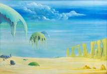 Karel Sirag (1948), surrealistisch woestijnlandschap, olieverf op doek, l.o. gesigneerd en gedateerd A.D.1973, 49 × 69 cm