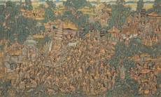 Balinese School: feestdag met parade, acrylverf op doek, r.o. gesigneerd G.S.T. Kon. Sunaka, tweede helft 20e eeuw, 115 × 190 cm