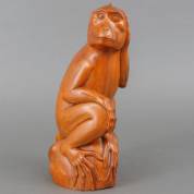 Gesneden houten beeld: aapje op rots, Bali, tweede helft 20e eeuw, onderop gesigneerd WJ. Kunus - Njuhkuning, en genummerd met pen 3295, 35 × Ø 15 cm