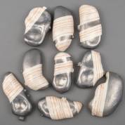 Anco van der Haar (1953), serie van negen kei-vormige objecten met lusterglazuur en strependecor, één object op onderzijde gesigneerd en gedateerd '94, herkomst: Collectie Galerie Jas, Utrecht, 14 × 22 × 7 cm