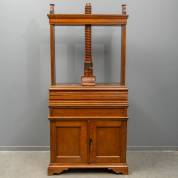 Mahonie buffetkast met beglaasde opstand en gesneden bladmotieven, uitvoering Meubelfabriek Nederland J.A. Huizinga Westersingel Groningen, gemerkt met plaatje op onderste plank, circa 1900, 178 × 116 × 43 cm