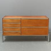 Teakhouten dressoir met vier lades en twee klapdeurtjes, model JDK, ontwerp Kho Liang Ie en Wim Crouwel, uitvoering Fristho, jaren '60