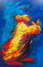 Chrit Rousseau (1941), bellenblazende clown, olieverf op doek, r.o. gesigneerd en gedateerd 2003, 200 × 130 cm