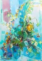 Groot schilderij: bloemstilleven, olieverf op doek, l.o. onduidelijk gesigneerd, 165 × 115 cm