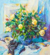 Chrit Rousseau (1941), bloemstilleven, olieverf op doek, r.o. gesigneerd, 110 × 100 cm