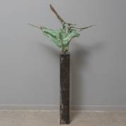 Ruurd Hallema (1954), abstracte sculptuur, brons op marmeren basement, hoogte beeld zonder basement 61 × 85 cm, hoogte inclusief basement 151 cm