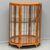 Halfronde mahonie vitrinekast met spiegelachterwand en twee glazen schappen, Engeland, begin 20e eeuw -lichte gebruikssporen-, 128 × 88 × 32 cm