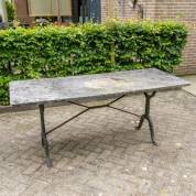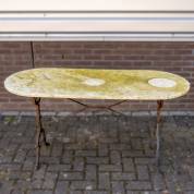 Langwerpige tuintafel met marmeren blad en gietijzeren onderstel, 73 × 140 × 60 cm
