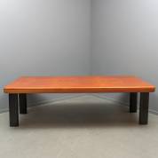 Madronagefineerde tafel op zwarte metalen poten, modern -gebruikssporen-, 74 × 250 × 120 cm