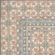 Grote partij dubbelgebakken aardewerk patroontegels, art nouveau, Japans geïnspireerd, circa 1910, bestaande uit: vierkante tegels met bruin bloemdecor, 14 × 14 × 1,5 cm, vierkante randtegels met blauw bloemdecor, 14 × 14 × 1,5 cm, en smalle randtegels met blauw bloemdecor, 14 × 7 × 1,5 cm, totale oppervlakte circa 15 vierkante meter, 430 × 345 cm -één hoektegel ontbreekt, aankoopnota en beschrijving bijgevoegd-