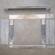 Grijs marmeren schouw, geflankeerd door kariatiden en bekroond door wit marmeren latei met griffioenen en lier in reliëf, eerste kwart 19e eeuw -niet helemaal compleet: basementjes van pilasters ontbreken, en twee kleine delen van een zijkant-, latei: 14,5 × 118,5 cm, kariatide 81 × 15 cm, bovenplaat 7 × 150 × 39 cm