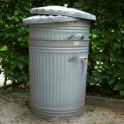 Paar verzinkte ijzeren prullenbakken -gebruikssporen-, 60 × Ø 50 cm