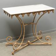 Wandtafel met marmeren blad en gietijzeren onderstel -enkele chipjes uit het bad, lak van de voet afgebladderd-, 80 × 89 × 46 cm