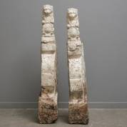 Paar witgeschilderde zandstenen leeuwtjes met wapenschild: fleurs de lis, zittend op zandstenen consoles, 18e eeuw, herkomst: landgoed Het IJzeren Hek, Breda -leeuwen staan los op de sokkels-, 115 × 19 × 29 cm