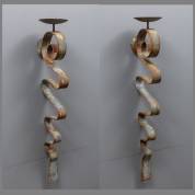 Paar stalen muurkandelaars met golvend basement -roest-, hoogte 140 cm