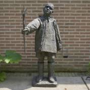 Bronzen beeld: jongen met korenaar, op de voet getiteld 'Yehuda' en gemonogrammeerd RS, achterop de jas met inscriptie 'Satguru' -drie gaten in voet voor montage-, 135 cm