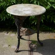 Rond tuintafeltje met marmeren blad en gietijzeren onderstel, 64 × Ø 60 cm