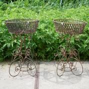 Twee gelijkende smeedijzeren bloemenmanden, 35 × 42 × 35 cm