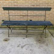Donkergroene tuinbank met metalen onderstel -één lat aan vervanging toe-, 89 × 156 × 43 cm